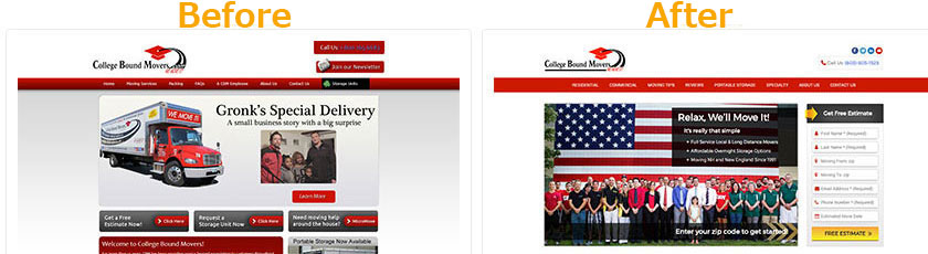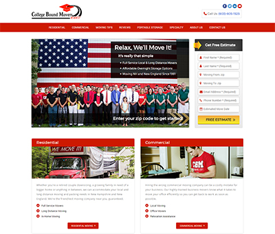 College Bound Movers is one the top moving companies in New Hampshire. They've received several awards and needed a new and improved website to better reflect their success. We devised a complex SEO content strategy and built them a new website with lead generation and sales in mind. Their new site not only looks better, but has successfully increased their website traffic and leads from search engines like Google, Bing and Yahoo.