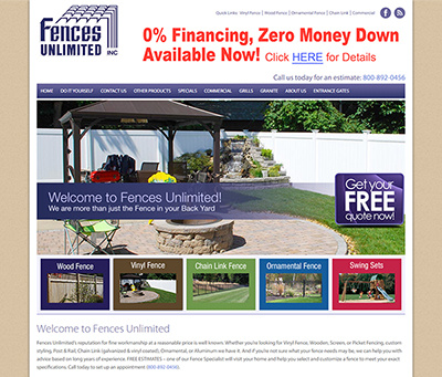 The Fences Unlimited site needed to become fully responsive and more visually appealing, so we designed a new site that did just that. The new site is content-heavy, so we used the popular WordPress content management system to make adding and removing content a breeze. We also updated their old content, added new content and made their new site SEO ready. These content updates have led to increased website traffic and leads from search engines like Google, Bing and Yahoo.