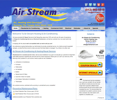 This small family run business has been fixing air conditioners around Tampa Bay since 1979. Their website was in desperate need of an upgrade both visually and for SEO reasons. We updated their old content, added new content and made their new site fully responsive and SEO ready.